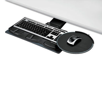 Fellowes® Professional Series Executive Keyboard Tray with Comfort-Lift™ system lets you slide mouse platform left or right over keyboard numeric pad and offers 2 custom height positions. Designed and manufactured for Fellowes® by Humanscale®. Mouse platform tilts forward or backward,...