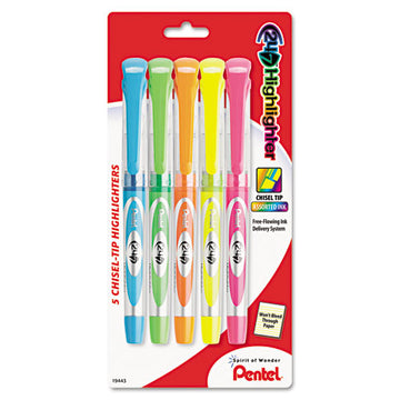 24-7 Highlighters, Assorted Ink Colors, Chisel Tip, Assorted Barrel Colors, 5-set