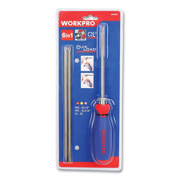 Designed for maximum contact, unique 6-in-1 driver provides you with the most commonly required sizes in one convenient package. Interchangeable, dual-tipped, heat-treated carbon-steel shafts easily stand up to the torque required to fasten most types of screws and bolts. QuickLoad™...